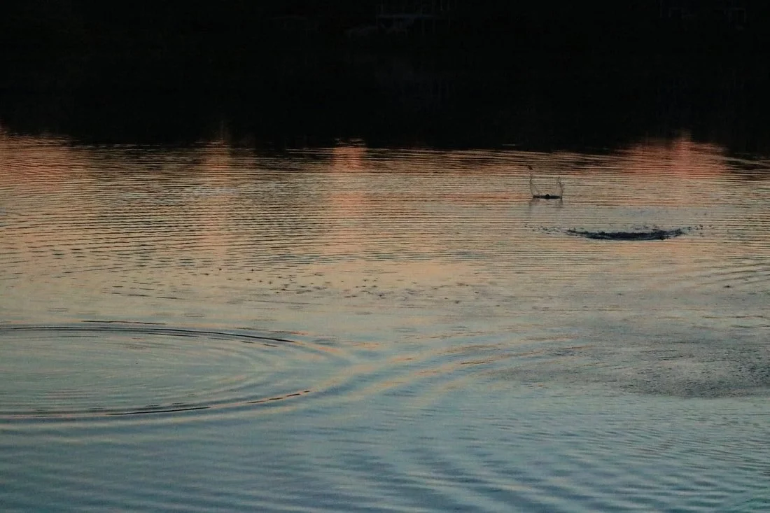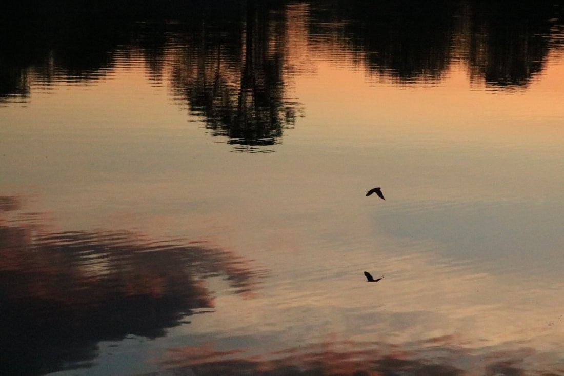 For the last few months, we've noticed a flock of birds that have congregated on the surface of the pond near our house, swooping and diving on the hunt for bugs swarming the surface of the water. This is always at dusk, so we've only ever been able to see their silhouettes.